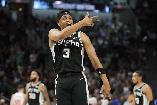 21歲的法國巨星,本場比賽狂砍40分、15個籃板和3次蓋帽,連續(xù)第三年完成了個人能力的升級,最終也是帶領(lǐng)球隊大勝對手,為馬刺隊拿到了開門紅。不僅如此,球隊的斯蒂芬·卡斯?fàn)栆材玫搅?2分、7個籃板和6次助攻,迪倫·哈珀則是15分、4個籃板和2次助攻,三人隱隱約約有了當(dāng)年GDP的影子。