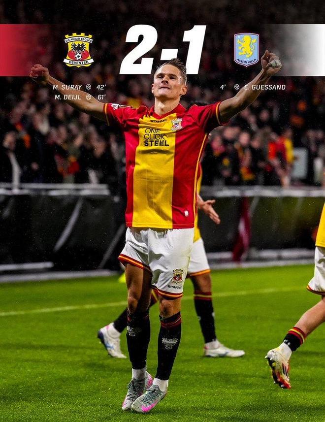 本輪歐聯(lián)最大冷門來自荷蘭的前進之鷹,全隊總身價僅僅只有區(qū)區(qū)3110萬歐元,卻在主場2-1掀翻身價高達5.46億歐元的英超勁旅阿斯頓維拉。